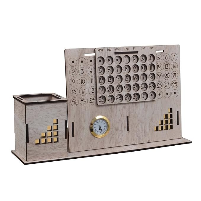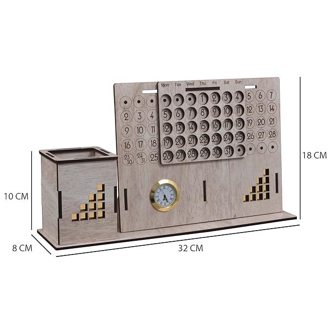 MULTIPURPOSE: This Product Can Be Used As Pen Holder Stand, Lifetime Calander And Time Showing Table Clock.